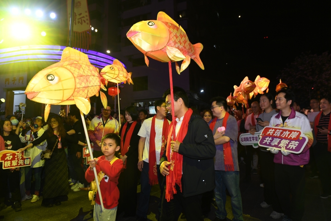 由龙狮队伍与火炬手组成的“红运当头”方阵,汇聚粤剧“八仙”、陶艺大师和非遗代表性传承人的“紫气东来”方阵,石湾各校学生组成的“金榜题名”方阵,话剧演员、古风美女组成创意十足的“一炮而红”方阵,美陶湾龙头企业组成的“鱼跃龙门”方阵,湾华小学十番表演队、金融银行企业等代表组成的“日进斗金”方阵。六大主题巡游方队处处展现了广东人对好意头的“执念”,也体现了人民群众对美好生活的向往。整个巡游方阵融合粤剧“八仙”、醒狮、十番、汉服等广府文化元素,还融入国风走秀、国潮影视等潮流元素,将美陶湾核心区域作为流动的文化秀场。值得一提的是,其中的黎冲状元方队,展现了黎冲文化精髓,也彰显了禅城石湾深厚的状元文化底蕴。