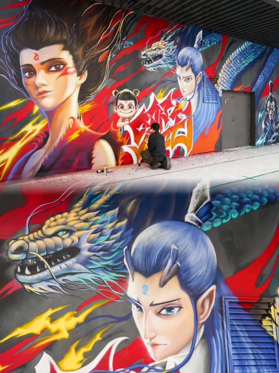 As the Chinese animated filmNe Zha 2continues to illuminate the global animated film box office charts, a wave of Ne Zha-themed graffiti murals has swept acrossGuangdong, drawing countless residents and tourists to visit and take photos.