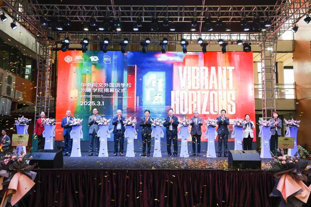 随后,各位嘉宾共同为米德学院剪彩。随着彩带飘扬,礼炮响起,米德学院正式起航。这一时刻,标志着华外在教育创新的道路上迈出了重要一步。