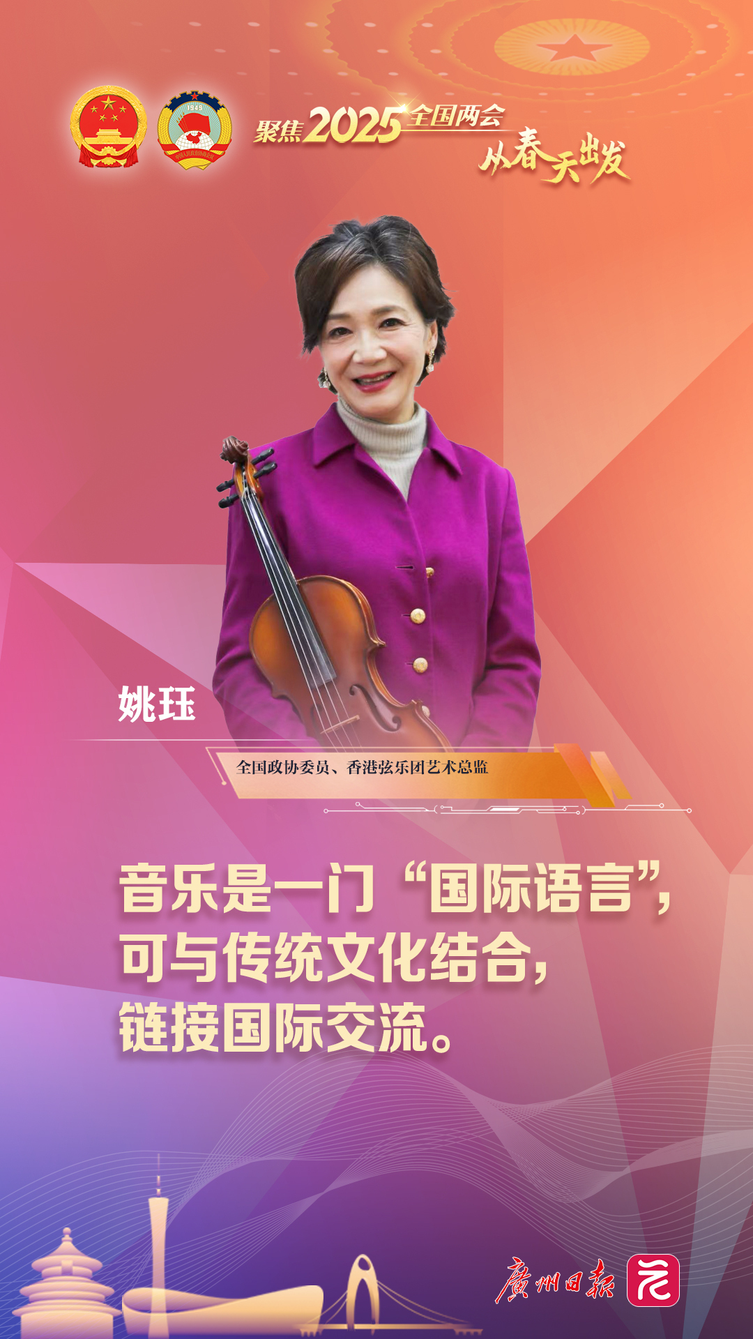 “音乐是一个国际语言。通过音乐把不同的文化连在一起,就能跨越差异,拉近不同国家、不同种族的距离。”全国政协委员、香港弦乐团艺术总监姚珏,多年来一直致力于用音乐架起东西方文化交流的桥梁。作为一位享誉国际的小提琴家,姚珏不仅用琴弦演绎经典,更用音乐讲述中国故事,让世界听见中华音。她的努力不仅为香港文化艺术发展注入了新动力,也为中华文化出海开辟了新路径。