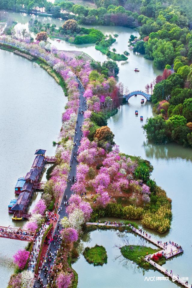 今年,海珠国家湿地公园还推出了丰富多彩的活动。以“花海花开 紫樱你来”为主题的“海珠湿地2025花朝节”已经开启,活动将持续到3月下旬。