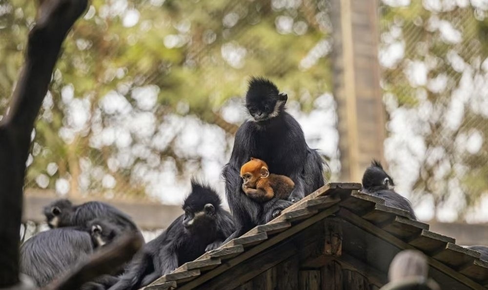 黑叶猴幼崽“初一”在黑叶猴大家族中格外耀眼