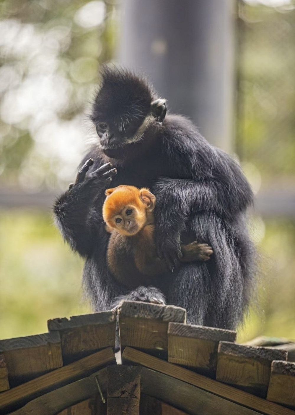 黑叶猴幼崽“初一”在妈妈“欢欢”的怀里