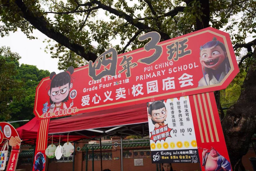 记者注意到,本次校园庙会哪吒形象出圈,不少档口都有哪吒形象设计。“还看,收你们来了。”“魔童来培正闹‘市’”“小爷我是培正娃”“我善由我不由天,扭转乾坤献爱心”等哪吒电影里的经典台词经过改编,趣味横生,成为本次校园庙会的一大亮点。
