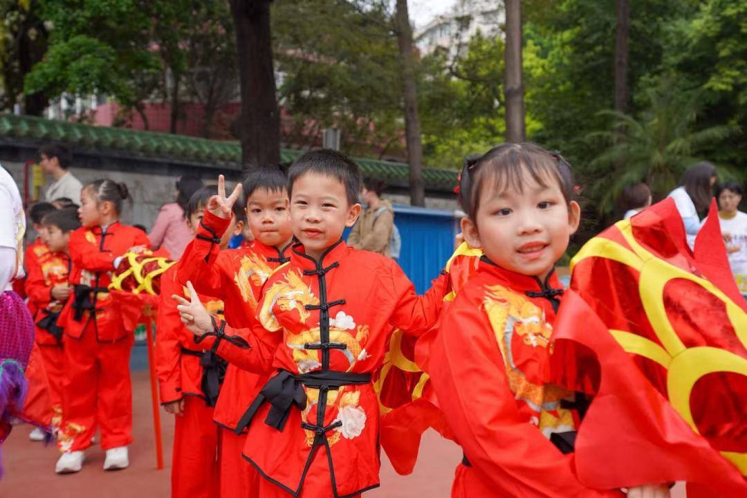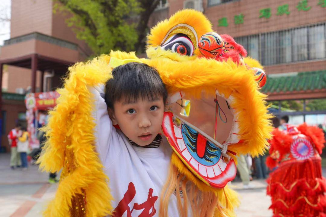 本次校园庙会还有来自东方红幼儿园的“小豆丁”献演非遗舞龙醒狮,以传统文化展演推动幼小衔接实践。