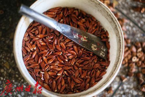 褐色的榄仁被收集起来,最后再经过脱皮分拣,就成了白胖胖的榄仁。油亮的榄仁富含维生素以及丰富的植物蛋白和微量元素,也是著名南粤美食榄仁月饼的重要原料。广州增城区,被誉为“榄乡”,橄榄与挂绿荔枝,迟菜心,丝苗米等被列为增城特产,这些增城特产是大自然的结晶,丰富了人们的餐桌,也传承了增城的文化。