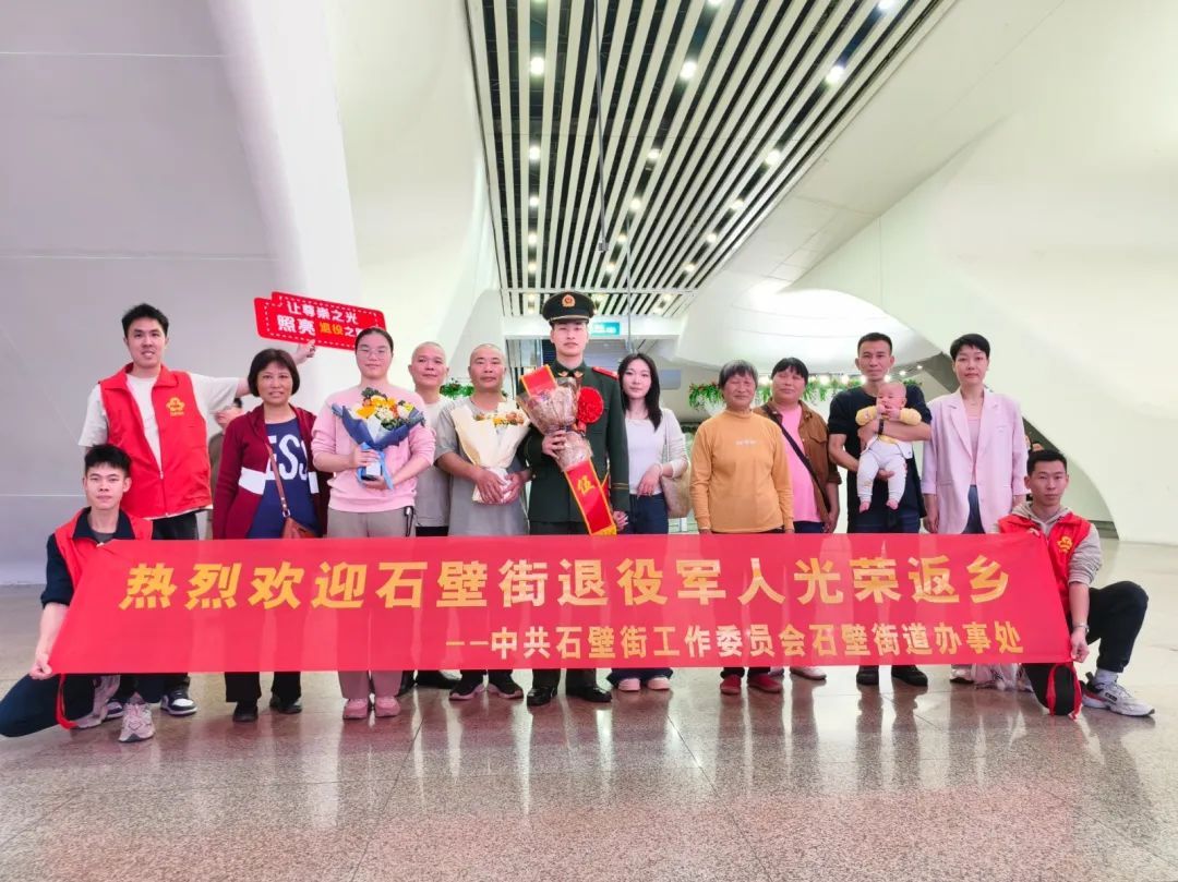 3月1日,石壁街退役军人服务站联同红棉老兵志愿者、退役军人家属齐齐来到广州南站,迎接2025年春季退役军人光荣返乡。