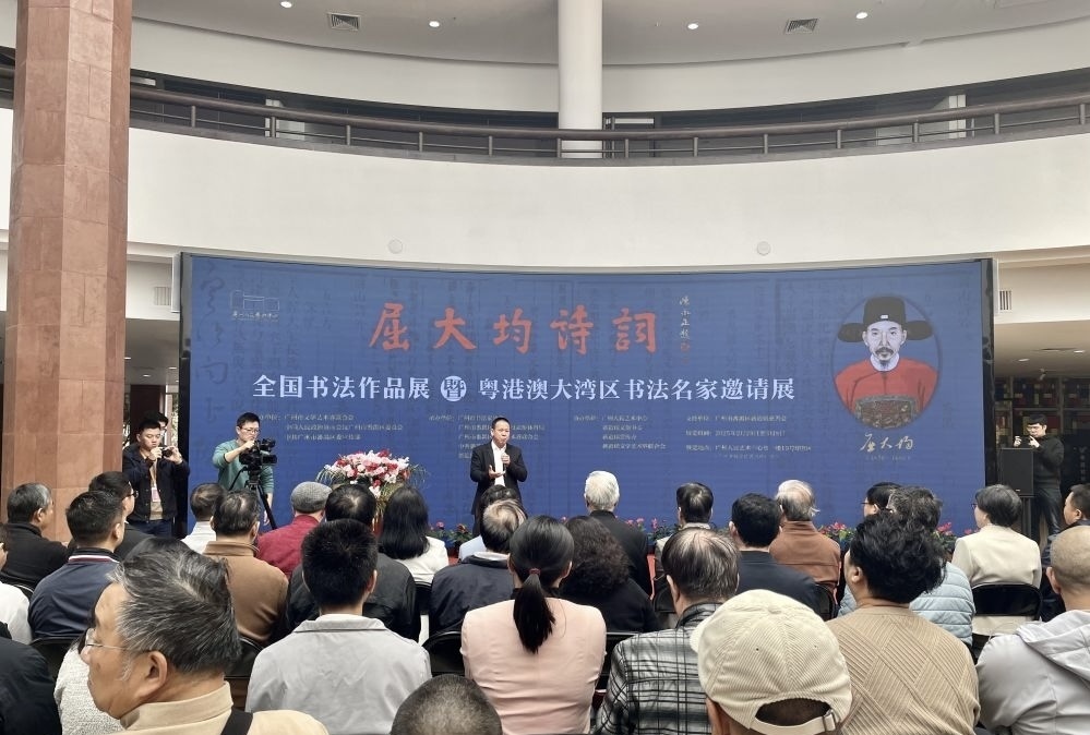 近日,“屈大均诗词”全国书法作品展暨粤港澳大湾区书法名家邀请展在广州人民艺术中心开幕,活动由广州市文学艺术界联合会、广州市番禺区政协、广州市番禺区委宣传部主办,广州市书法家协会、番禺区文化广电旅游体育局、番禺区文学艺术界联合会及新造镇人民政府、新造镇党群服务中心、新造镇党建和组织人事办、新造镇慈善会等单位协办。