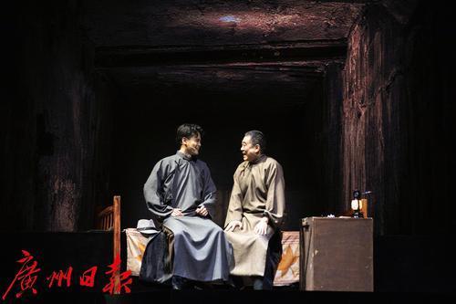 陈树人饰演者李跃辉(左)接受采访时透露,在舞台上他听到陈复牺牲那一幕时,控制不住眼泪流下。