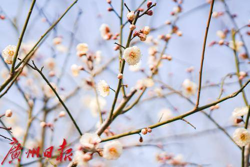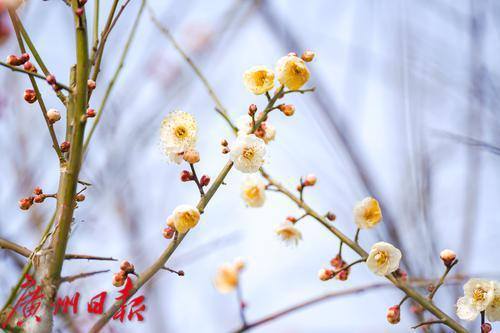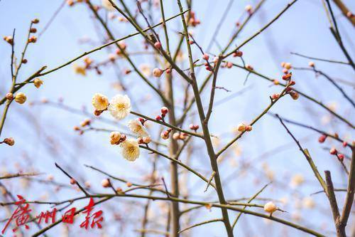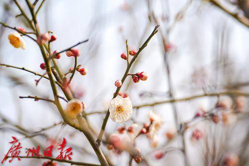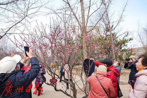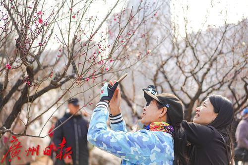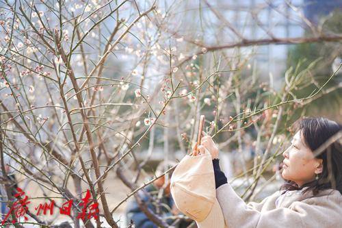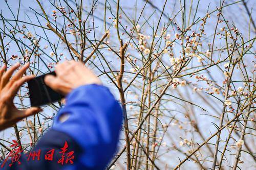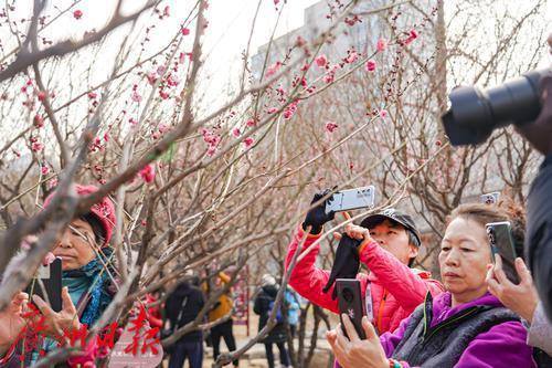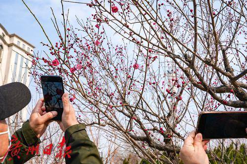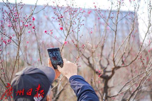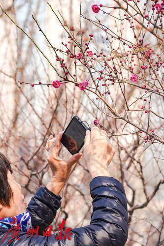 梅花报春,吸引了不少市民拍照打卡。