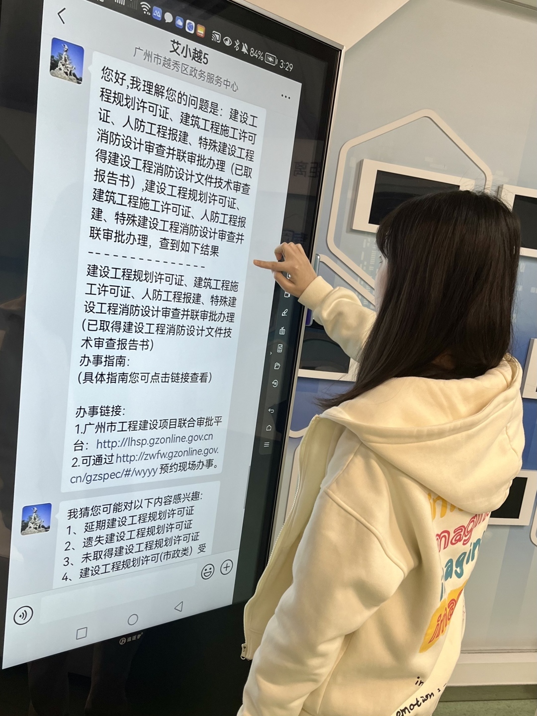 在广州市越秀区政务服务中心,市民罗女士通过“艾小越”政务机器人咨询建设工程规划许可,仅2秒便获得涵盖受理条件、办理流程、办事指南等多要素的定制化方案。“解答又快又准,就像和窗口办事员对话。”她感慨道。记者今日获悉,越秀区通过引入DeepSeek大模型技术,推动政务服务向“数据驱动”转型,为数字治理树立新标杆。