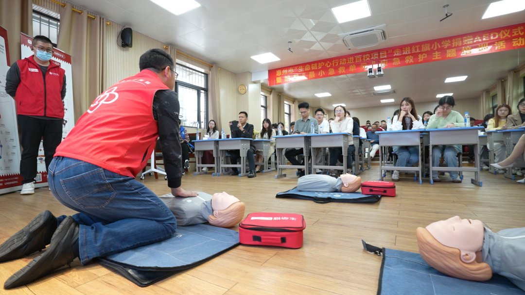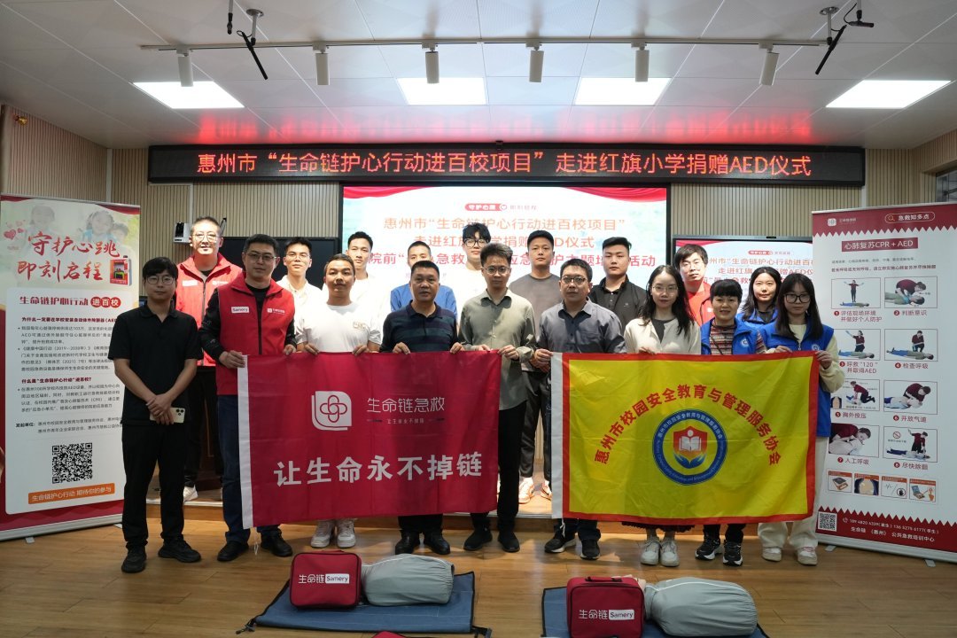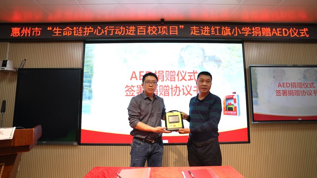 3月4日,在惠州市教育局的支持下,“生命链护心行动”进百校项目在仲恺高新区惠环红旗小学举行启动仪式,活动现场进行了AED捐赠仪式暨院前“最小急救单元”应急救护主题培训。本次活动由仲恺高新区教育文化卫生健康局主办、惠州市校园安全教育与管理服务协会等机构承办。
