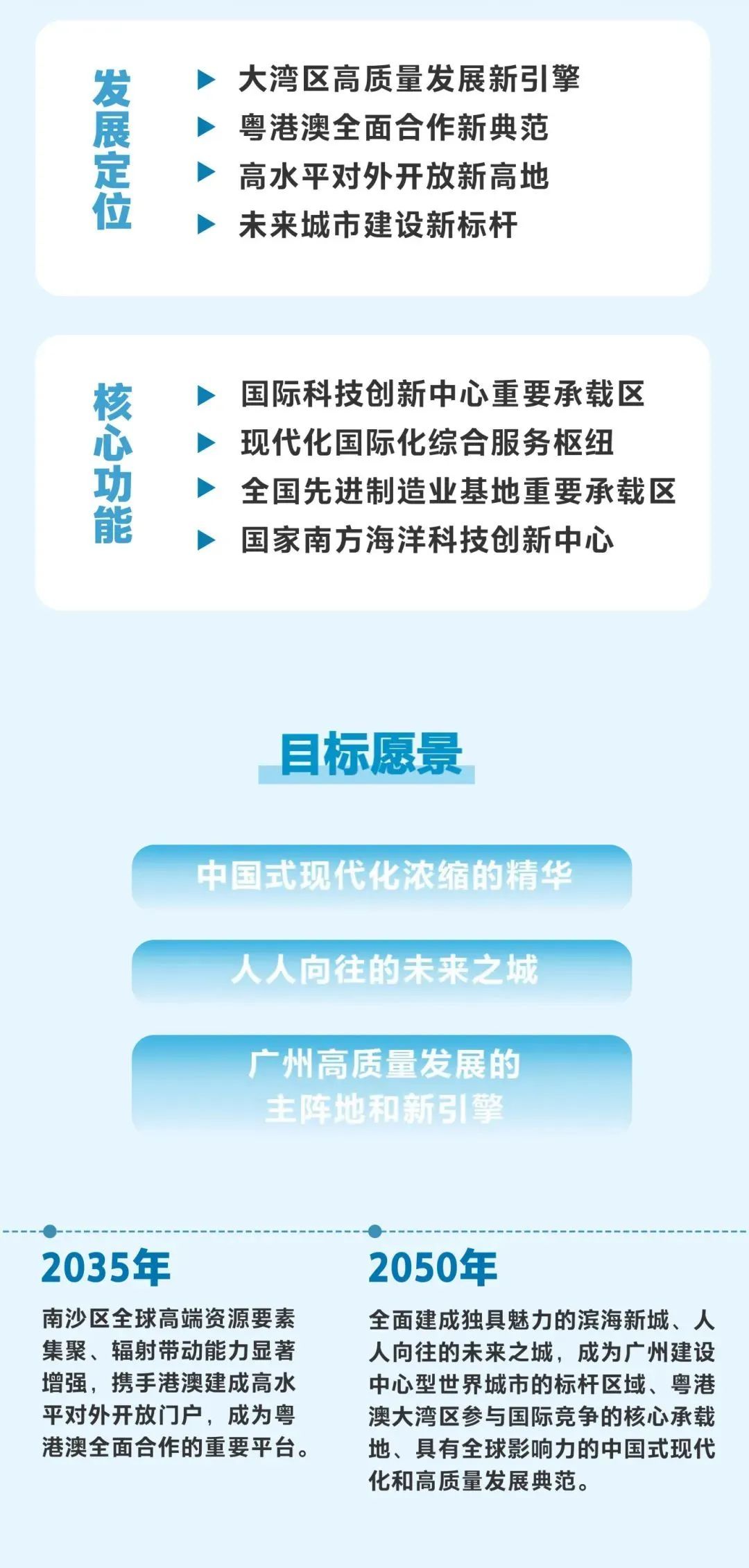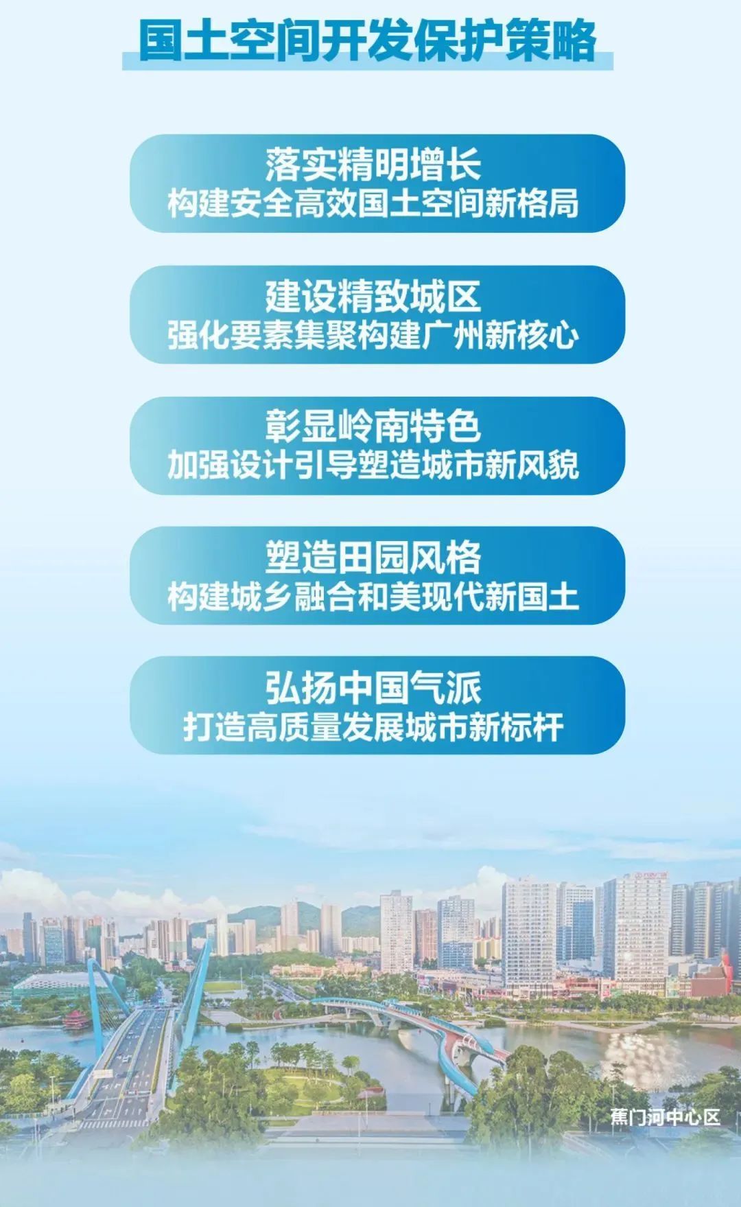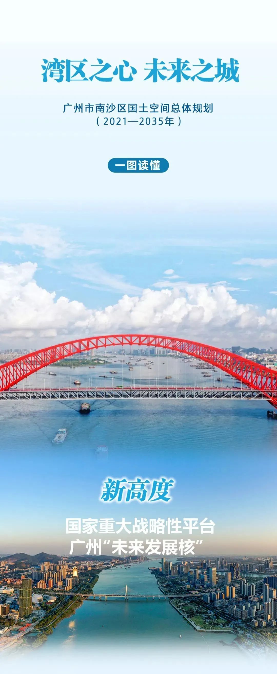 《广州市南沙区国土空间总体规划(2021—2035年)》整体谋划南沙区面向2035年中长期发展的空间战略蓝图,以“打造立足湾区、协同港澳、面向世界的重大战略性平台”为目标,以全面实施《南沙方案》为牵引,坚持以人民为中心,按照“精明增长、精致城区、岭南特色、田园风格、中国气派”的规划理念,整体优化提升国土空间开发保护格局,打造最中国、最岭南、最现代、最国际的“未来广州”,为广州加快实现老城市新活力、“四个出新出彩”,继续在高质量发展方面发挥领头羊和火车头作用作出应有贡献。