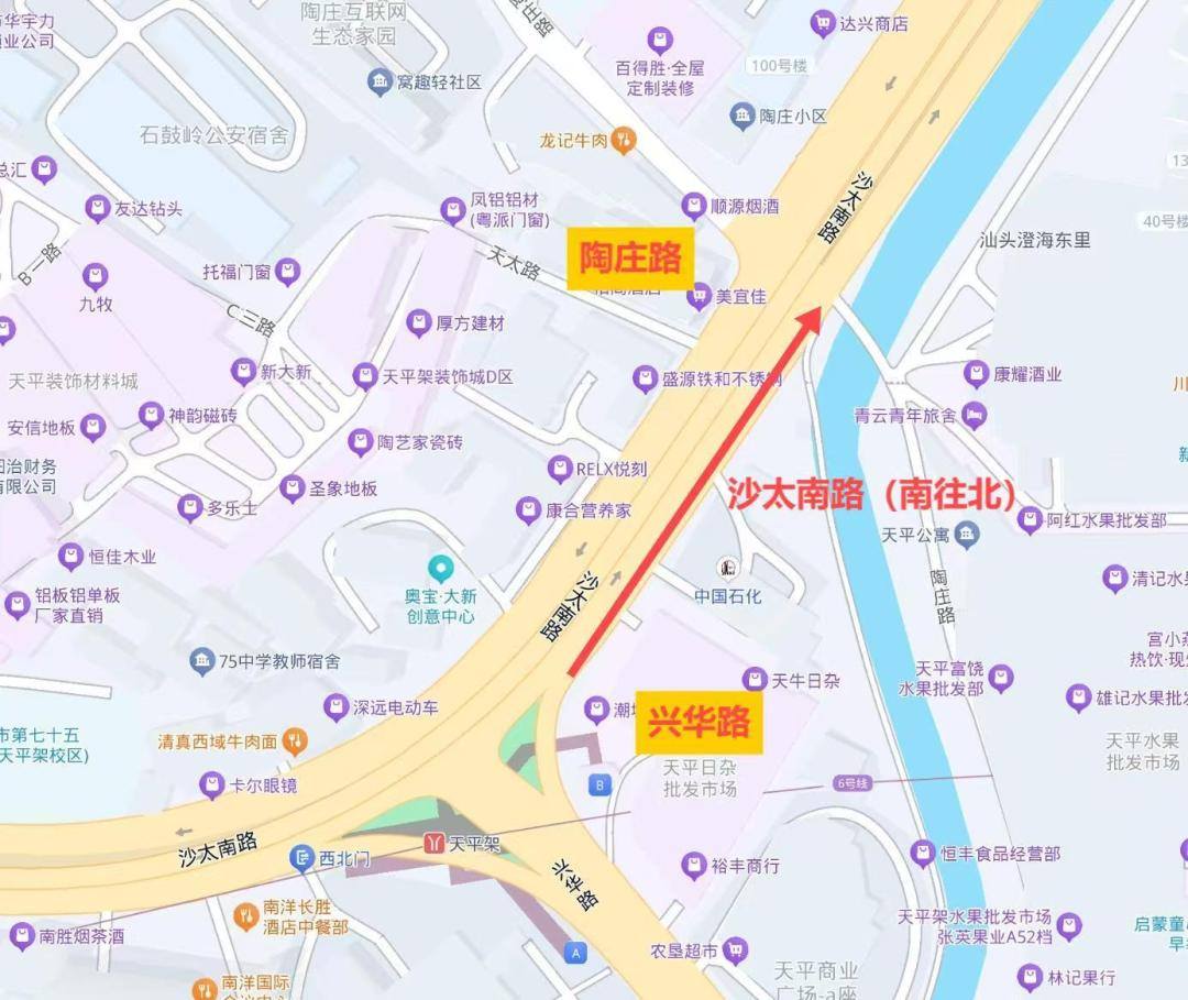 ▲天河区沙太南路(南往北方向,兴华路至陶庄路)