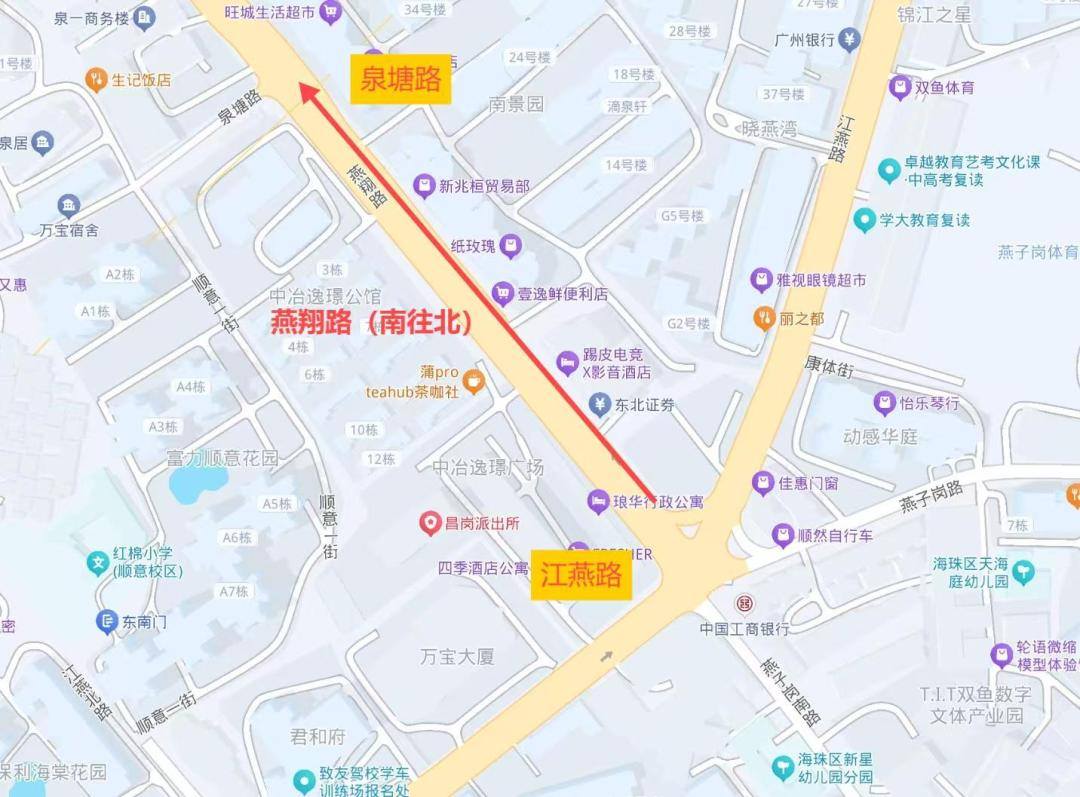▲海珠区燕翔路(南往北方向,江燕路至泉塘路)