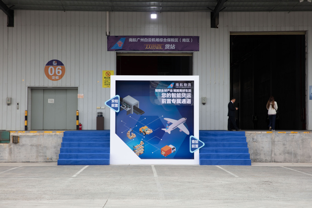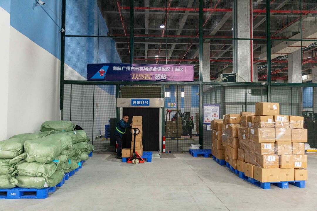 作为粤港澳大湾区空港物流体系的重要支点,该货站创新构建了“监管前置+功能集成”的立体化作业模式。“双前置”货站规划建设面积3300平方米,配备4组安检作业线和8组打板组装平台,并依托广州白云机场综保区(南区)空港物流监管中心的海关监管作业场所资质,实现了货物“一站式”完成收运、清关、海关查验、安检、组板等全流程作业。依托“区港联动”机制,货物通过专用车辆短途驳运,实现综保区与机场停机坪的无缝衔接,大幅提升物流效率。以往,企业需要前往白云机场货站办理货物托运和提取手续,如今,在白云机场综保区,企业可以在“家门口”享受到与机场货站相同的航空物流服务。