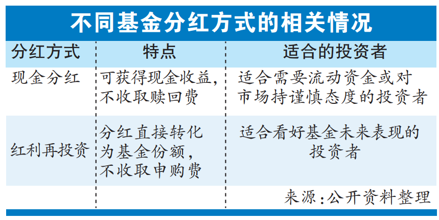 对于投资者而言,两种方式如何选择呢?有公募基金业内人士表示,投资者可以结合该基金的具体情况、自身资金需求等综合判断。“如果看好这只基金所投资的市场或者板块,可以考虑选择红利再投资。如果觉得该基金投资的底层标的存在回调风险,可以选择现金分红。”该业内人士提醒,股票型基金的波动相对较大,投资者要根据该基金实际投资的赛道进行综合判断。