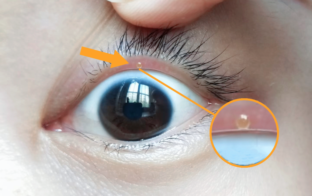 然而,当睑板腺分泌的油脂氧化变稠,就很容易形成脂栓,导致腺管扩张,就可能导致油脂堆积在睑板腺开口,形成肉眼可见的、针尖大小的小泡。