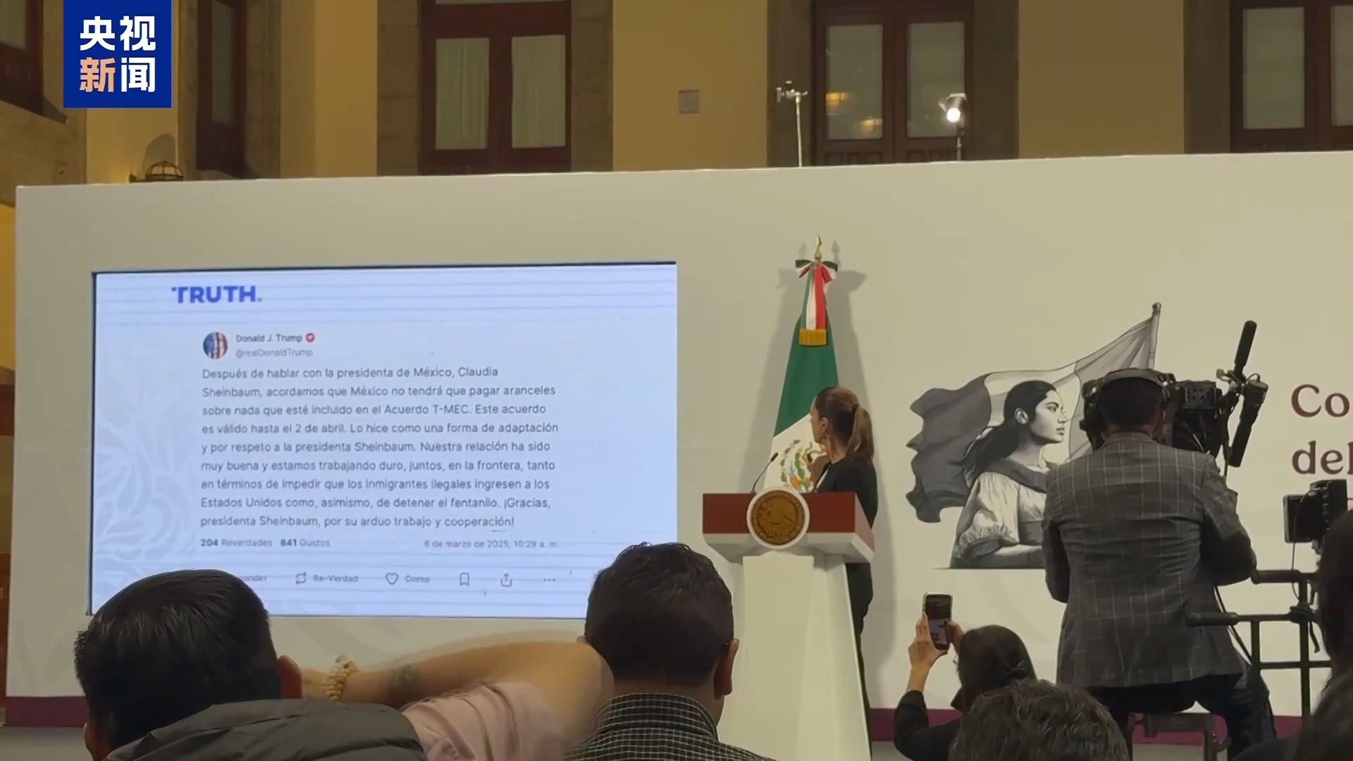 美国总统特朗普当地时间6日在社交媒体上说,对墨西哥、加拿大两国加征的25%关税措施将暂缓执行直至4月2日。墨西哥总统辛鲍姆当天证实,在4月2日前,墨西哥将不必为《美墨加协定》涵盖范围内的商品支付关税。她还表示,墨西哥将继续就关税问题与美国进行协商。
