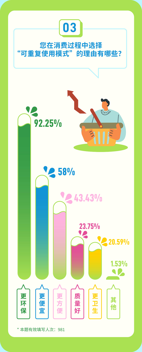 调查发现,66%的受访者表示能够识别重复使用模式,并认为其“更环保”和“更便宜”。然而,仍有部分消费者对重复使用模式的卫生问题表示担忧。报告指出,通过加强科普宣传、优化产品设计以及公开清洗消毒流程,可以有效提升消费者的信任度和接受度。