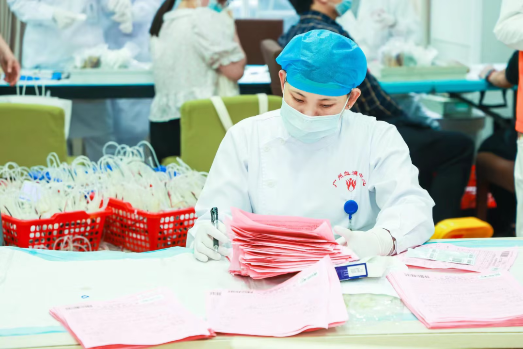 2月28日,广州日报新花城记者在广东省人民医院组织的无偿献血活动上见到林秀玉时,她正在熟练高效地检查核对着每个采集好血液的血袋,确定标签上信息和表格登记的一致、留存的标本够量。在外采组的一线护士中,林秀玉是最资深的一员,但她依然坚持在一线,每次出外采任务,流程中接待登记、初筛、采血、核查等不同岗位,都和同事轮着做。“我已经习惯了这种忙碌,喜欢这样一坐下来就不停地干活、忙完后收工的感觉。”林秀玉说。