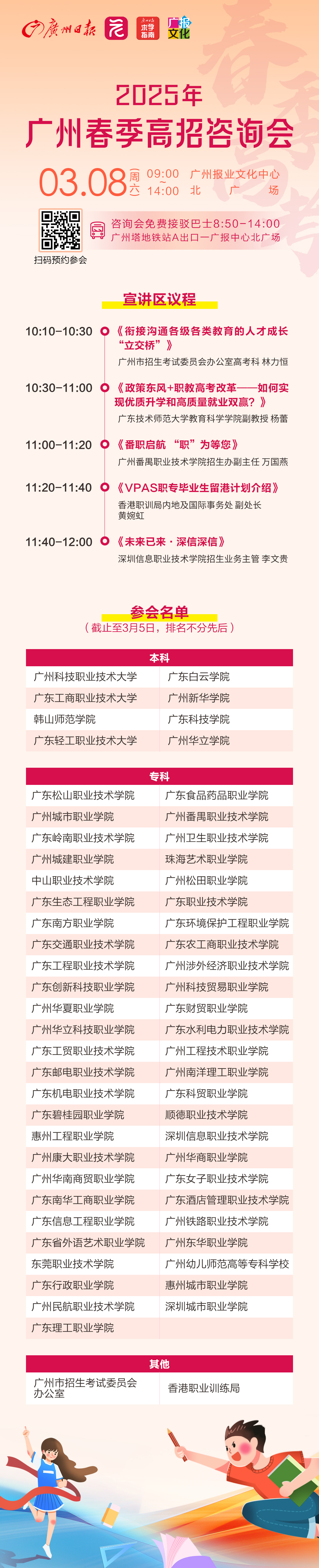 2025年广州春季高招咨询会由广州市招生考试委员会办公室指导,广州日报报业集团(广州日报社)主办,广州日报求学指南工作室、广州广报文化发展有限公司承办。