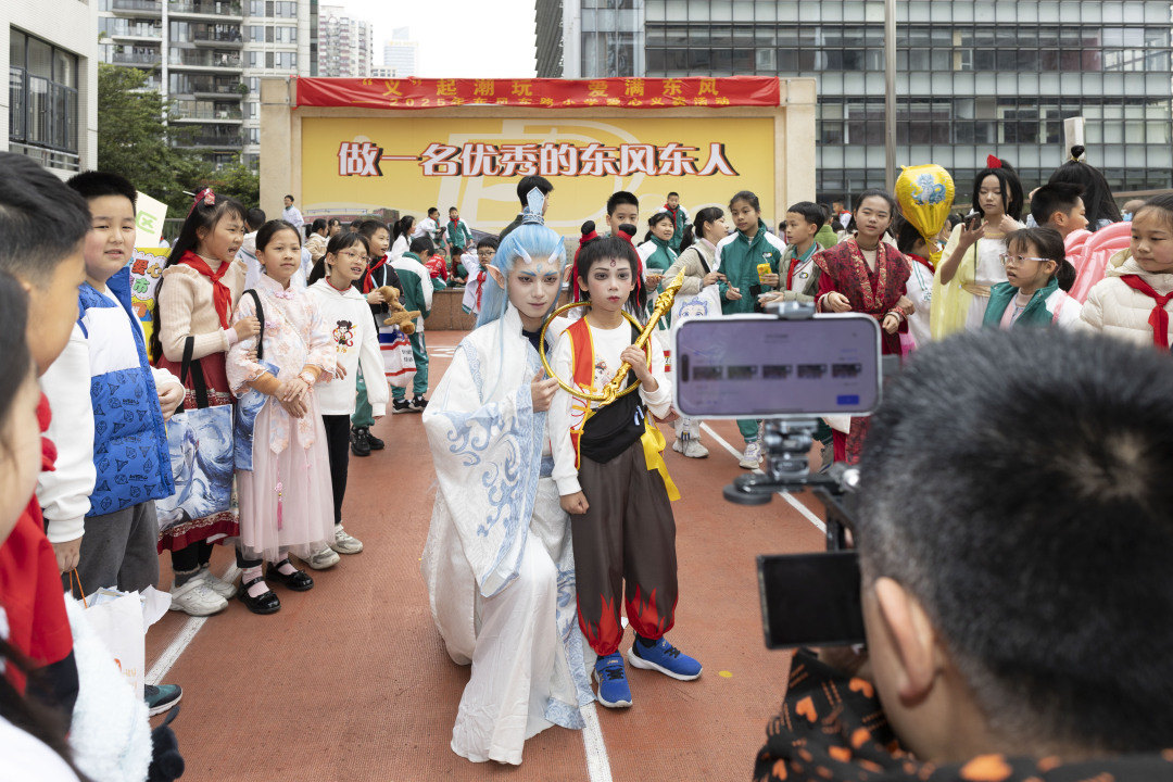 据悉,为了让传统文化在校园生根发芽,东风东路小学特别推出“传统文化守护者”项目式课程。课程围绕“中国动漫的崛起”“中国影视的文化密码”“中华戏曲的千年之美”“非遗创新的破圈之路”四大主题展开,通过沉浸式体验和趣味互动,让学生们在实践中感受传统文化的魅力。课程不仅培养了学生的文化自信,更激发了他们的创新思维。