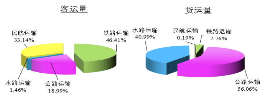 图1 2025年1月份各运输方式占客运量、货运量比重