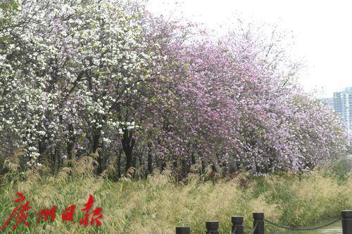 广州海珠湿地紫荆花盛开