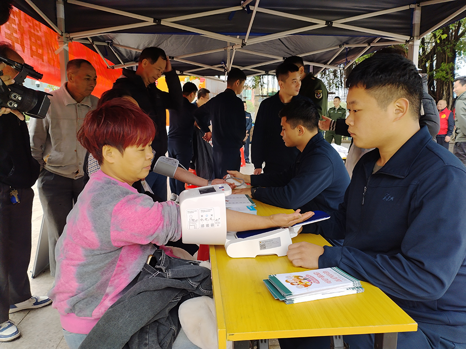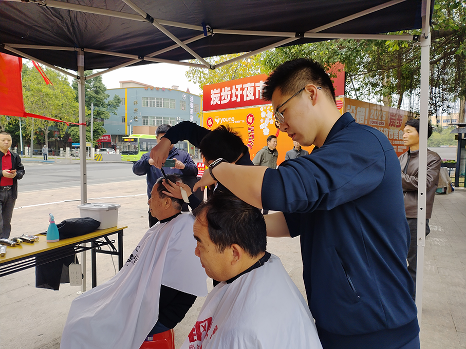 在炭步镇东风村旺边广场内,部队官兵和红棉老兵志愿服务队员开展理发、打扫卫生等义务服务活动,为辖区群众免费提供高血压、糖尿病、心脑血管疾病、老年人多发病等健康咨询服务,普及健康知识,引导辖区群众树立对疾病“早预防、早发现、早治疗”的科学理念,社区居民踊跃参加。