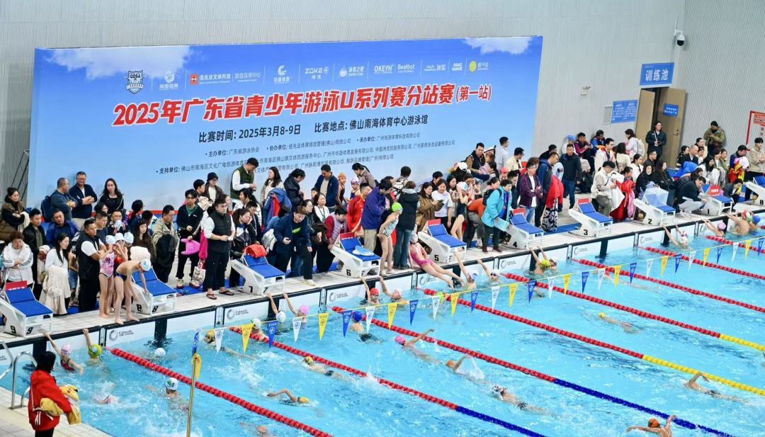 3月8日-9日,由广东省游泳协会主办的2025年广东省青少年游泳U系列赛分站赛(第一站)在佛山南海体育中心游泳馆举行,从U8组到U16-18组共设9个组别,进行50米、100米、200米共152小项的比赛,共有135个俱乐部的2421名选手报名参赛。
