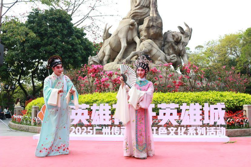 阳春三月,红棉灼灼。3月9日下午,广州越秀公园五羊雕塑下的红棉舞台迎来了一场别开生面的艺术专场。作为“英雄花开英雄城”2025广州传承弘扬红色文化系列活动的重点演出之一,广州粤剧院为市民呈现了一场兼具艺术水准与思想价值的折子戏专场。