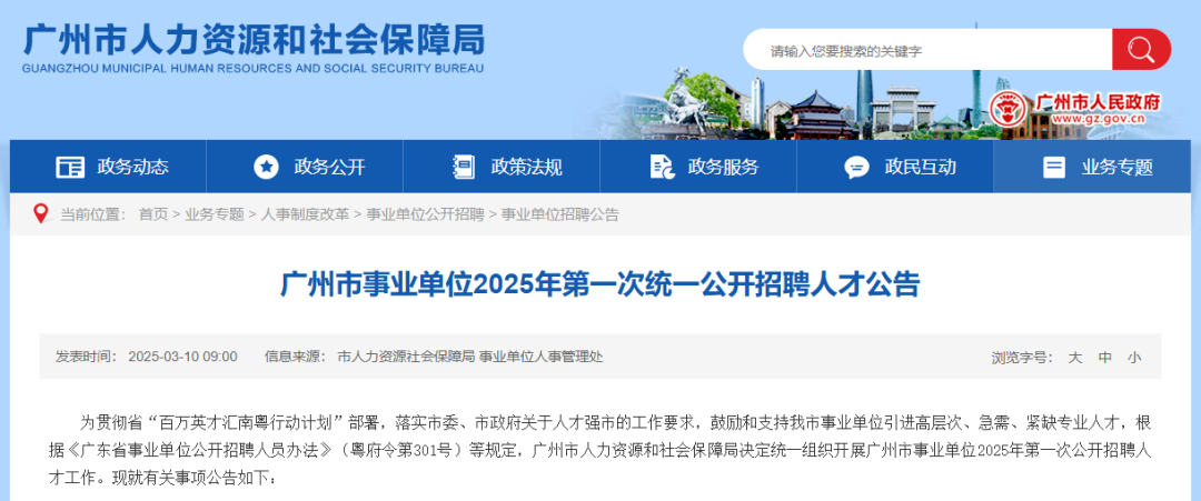 广州市人力资源和社会保障局发布
