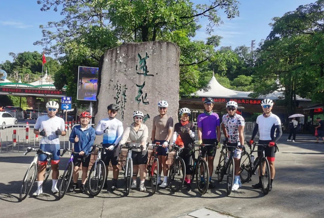 ▲和骑友在莲花山合影