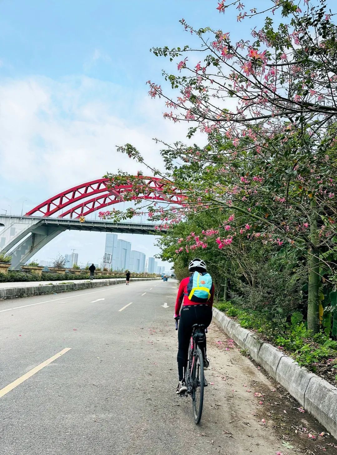 从只是戴个帽子,到专业的骑行头盔、骑行服、骑行锁鞋等,林老师慢慢习惯了穿着专业骑行服出门。每天上下班的路程,也成为了她运动锻炼的时间,甚至她还会早起一点,骑着车先去周边兜一大圈,再准时回到学校。因为骑行,原先枯燥的上班路,也变成一路的风景。