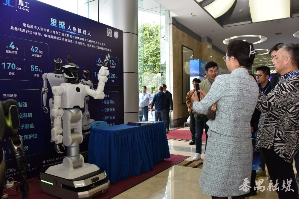 里掂人形机器人在第六届粤港澳机器人与人工智能大会上备受关注