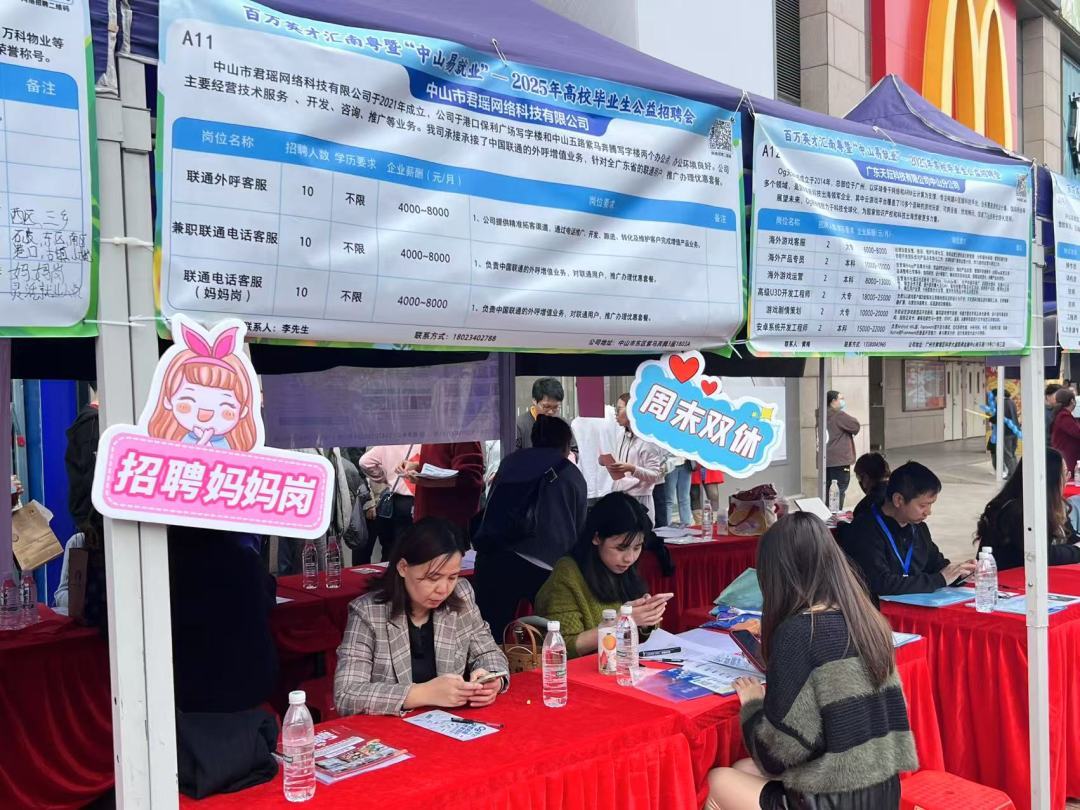近日,中山在石岐大信商圈举办“百万英才汇南粤暨中山易就业-2025年高校毕业生公益招聘会”,招聘会现场共计超90家企业参与,提供近1600个就业岗位,适合高校毕业生岗位超75%,超60%岗位聚焦新兴产业赛道,覆盖新能源、生物医药、信息技术、光学光电、智能家电等重点产业。“商圈+”招聘会将求职与消费场景深度融合,为求职者提供了便捷直达且充满机遇的就业平台,用城市“烟火气”为就业服务“聚人气”,吸引超2500名求职者前来。