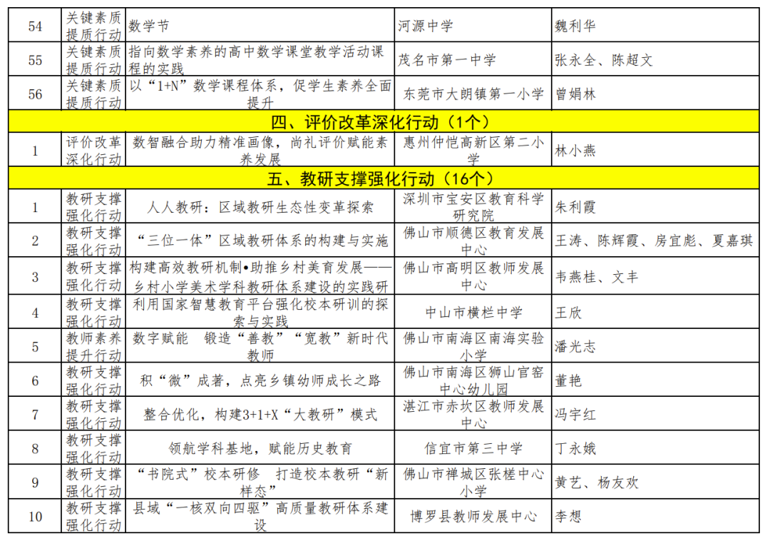 《广东省基础教育课程教学改革深化行动实施方案(2024-2027年)》要求,聚焦育人关键环节和重点领域,加强机制创新,重点启动课程教学改革“六大行动”计划,通过建立一套破解教学改革重难点问题的有效工作机制,培育一批深入实施新课程的示范区、示范学校,研制一套课程教学改革转化落地的工具支架,建设一支高素质专业化创新型的骨干队伍,形成一批改革成果显著、育人要求有效落实的典型案例,打造实施国家基础教育课程教学改革深化行动的广东样本,推动全省基础教育课程教学改革不断深化,育人方式发生深刻变革,片面应试教育倾向得到根本扭转,良好教育生态逐步形成。
