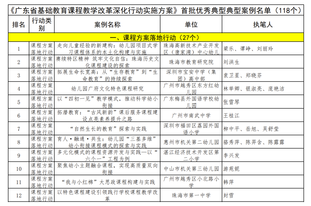 3月11日,广东省教育厅公示《广东省基础教育课程教学改革深化行动实施方案》首批优秀典型案例名单。公示称,现初步确定《广东省基础教育课程教学改革深化行动实施方案》首批优秀典型118个。公示期为2025年3月11日—2025年3月18日。