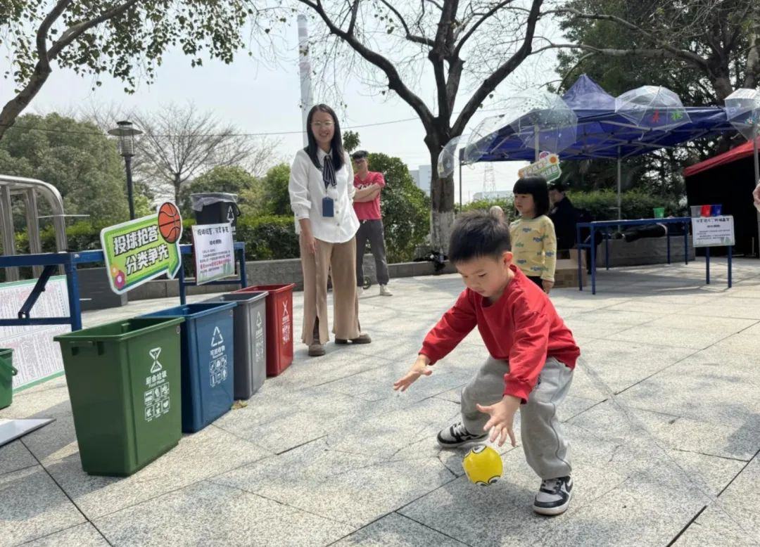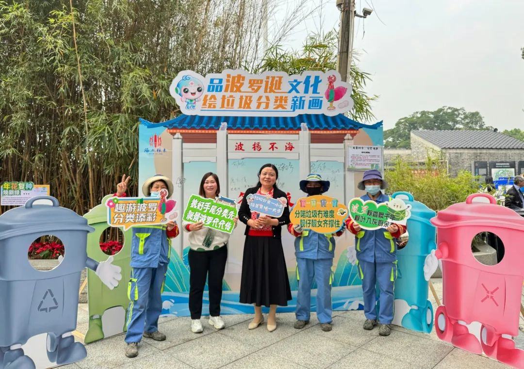 庙会东门外的集市区掀起了环保新风潮:在穗东街道垃圾分类主题签名墙旁,不少市民正与“分类吉祥物”合影打卡。巨型垃圾分类签名墙、DIY手绘风车、“判桶赛”挑战游戏吸引家庭踊跃参与,非遗版互动设计让环保宣传趣味十足。