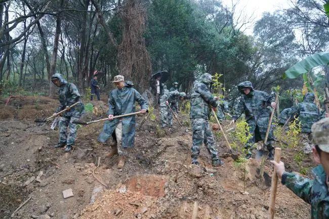 第二场义务植树更是以植树活动为契机,深化“党群共建、军民融合”实践,沙头街党工委、街道驻村团队、横江村两委干部及工作人员,联合沙头街武装部60余名新战士以军人作风高效完成树苗栽种任务,凸显党建引领下的军民融合、干群同心,为乡村治理注入新动能。