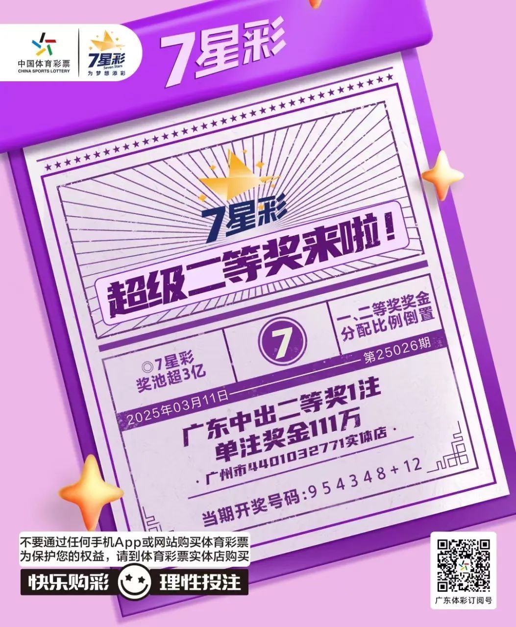 每购买2元的7星彩,就有0.74元作为彩票公益金被应用于社会公益事业和体育事业的发展。本期兑奖截止日为2025年5月12日,逾期作弃奖处理。请中奖者妥善保管中奖彩票,及时前往广州市体育彩票管理中心办理兑奖手续。