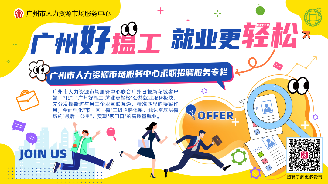 广州市人力资源市场服务中心联合广州日报新花城客户端、大东街道党群服务中心,打造“广州好揾工·就业更轻松”公共就业服务板块,充分发挥街坊与用工企业互联互通、精准匹配的桥梁作用,全面强化“市-区-街”三级招聘体系,触达至基层街坊的“最后一公里”,实现“家门口”的高质量就业。