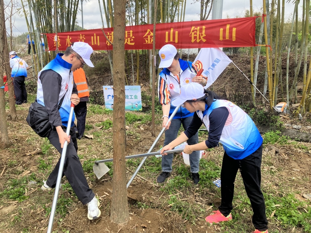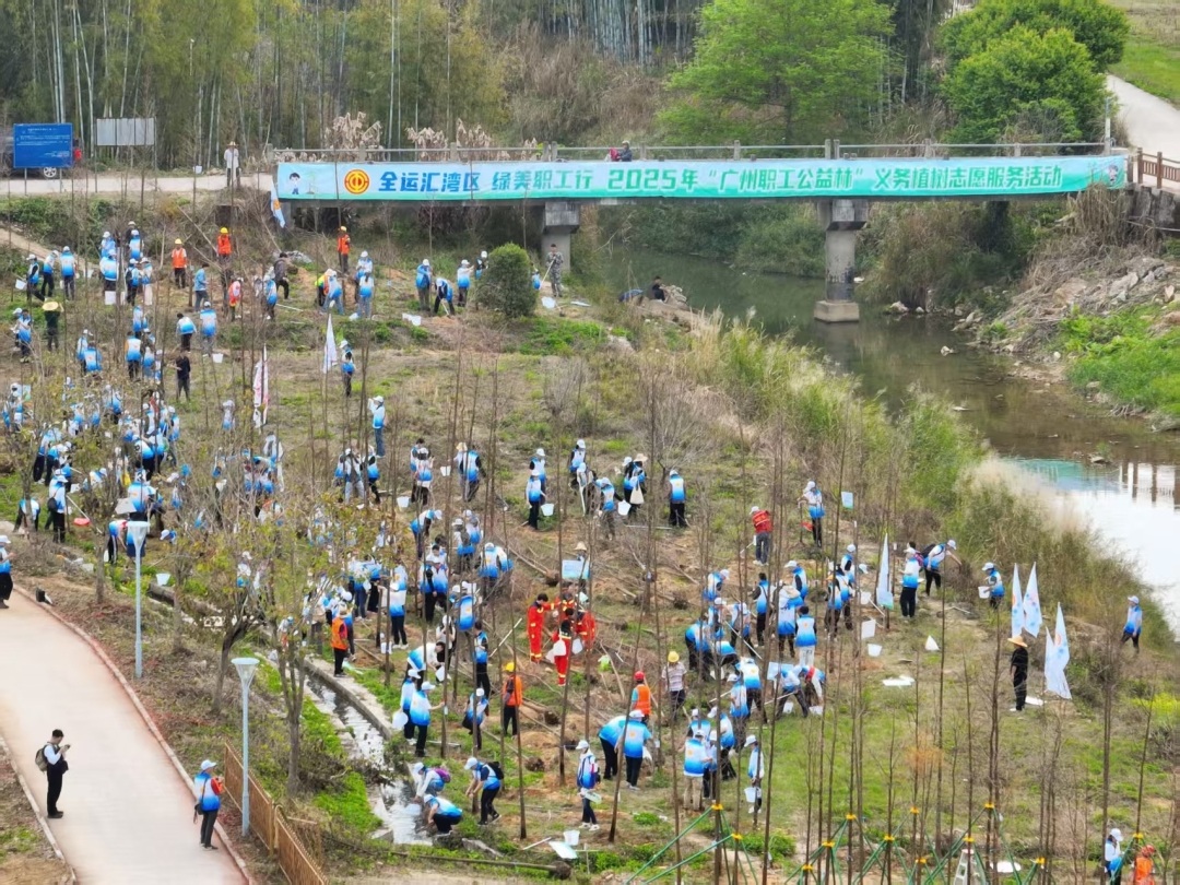 广州市总工会于2018年3月启动“广州职工公益林”建设,创新推出“红色教育+绿色实践”“义务植树+工会服务”“线上认种+线下植树”等新模式。截至目前,共组织发动全市超过 700个基层工会、近3万名职工在全市开展义务植树,累计植树近5万棵,绿化面积超过900亩。