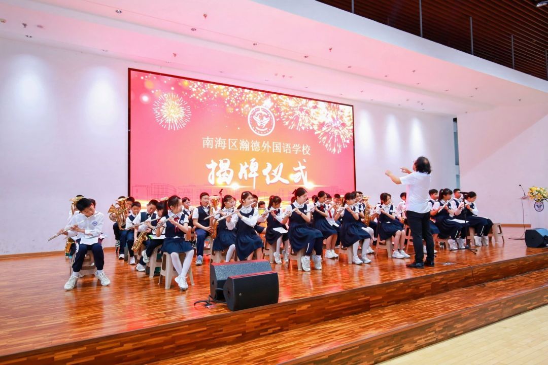 在揭牌仪式上,领导嘉宾共同为“佛山市南海区瀚德外国语学校”揭牌,礼炮齐鸣,管乐队奏响激昂旋律。此次揭牌仪式不仅是学校发展的里程碑,更是九江镇教育事业的新起点。
