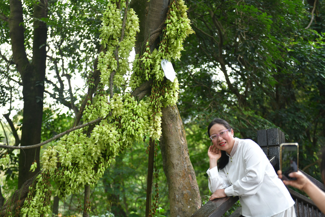 工作人员介绍,园内的禾雀花一般从三月中下旬盛开,至清明前后是赏花的最佳时期,花期约为一个月。今年花势较往年尤其茂盛,最佳赏花期为3月10日至20日,清明前后将迎来“人在花中游”的盛况。为保障观赏体验,公园在最佳观赏区设置观景平台,并安排“网红打卡点”指引牌,吸引众多游客拍照留念。