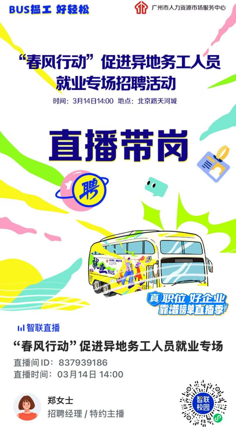 湾区就业巴士,本站将停靠——北京路!3月14日14:00-17:00,“春风行动”2025广州市促进异地务工人员就业专场招聘活动将在北京路天河城南门举行。求职者直接上双层巴士求职面试,还可以在就业指导区、AI招聘区等解锁新体验。