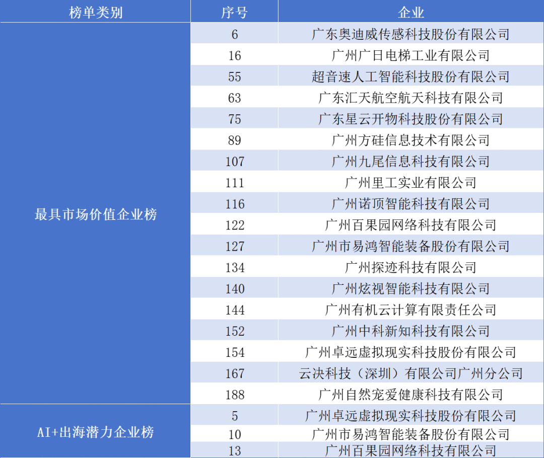 2024广州人工智能创新发展企业榜单(番禺企业)