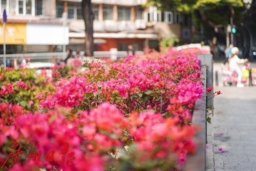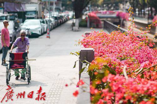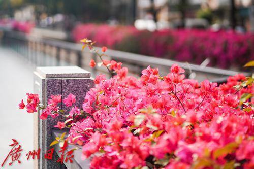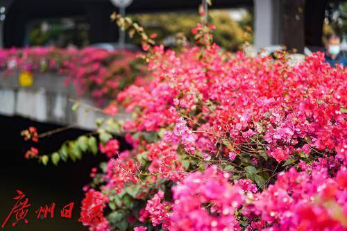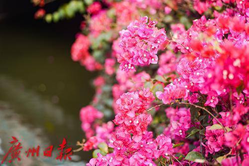 花城广州的春日,街头巷尾各色鲜花绽放,美不胜收。3月14日,在越秀区新河浦涌其中一段的沿岸,簕杜鹃正在阳光下肆意绽放,微风拂过,花朵轻轻摇曳,河涌在簕杜鹃的装点下,也成为了春日里一道亮丽的风景线。