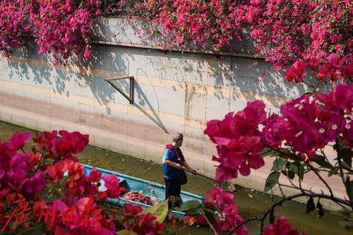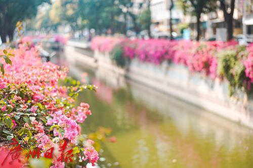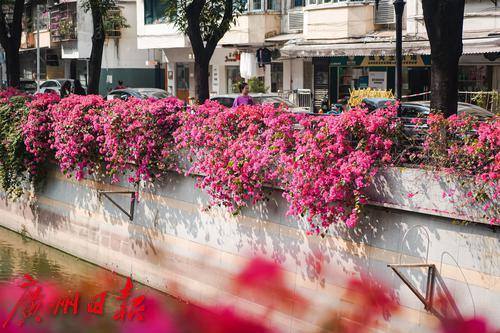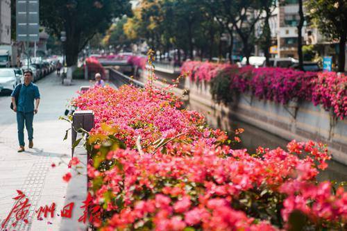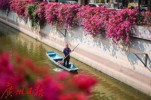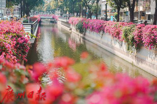簕杜鹃将河涌装点成风景线。